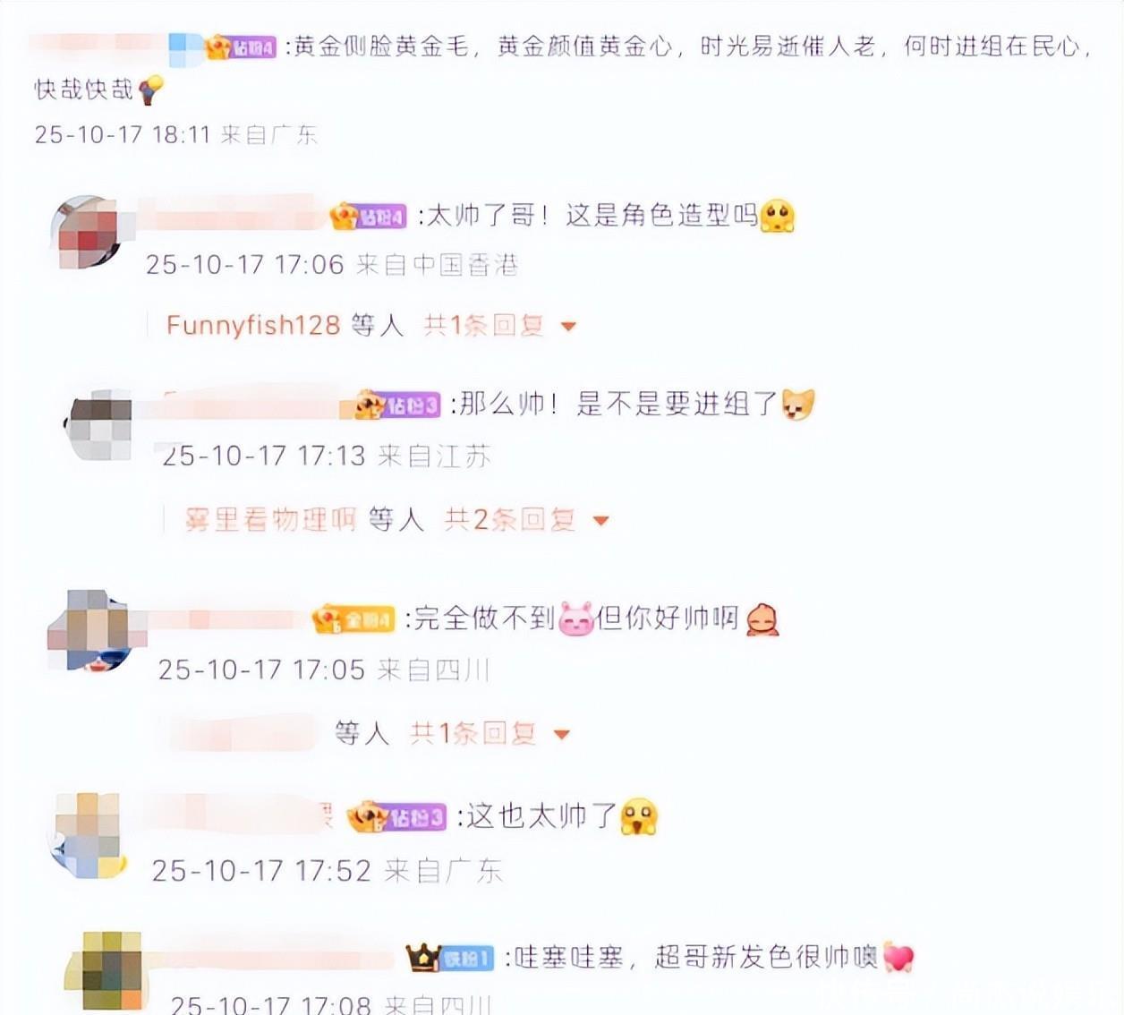 当然也佩服邓超这种敢于尝试的精神,就单论这头黄发,那让粉丝观众么一顿夸。网友评论:“哇塞哇塞,超哥新发色很帅噢”“这也太帅了”“黄金侧脸黄金毛,黄金颜值黄金心,时光易逝催人老,何时进组在民心”